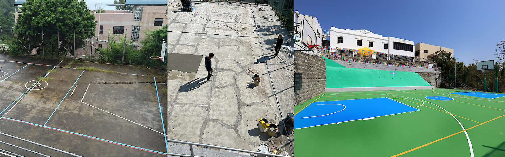 早年籃球場的建造是由胡欽牧師帶領,由同工和同學自行開荒以英泥石米建成,估計沿用至今超過40多年,所以不計以前的小修小補,此次翻新可算是最全面的一次。
